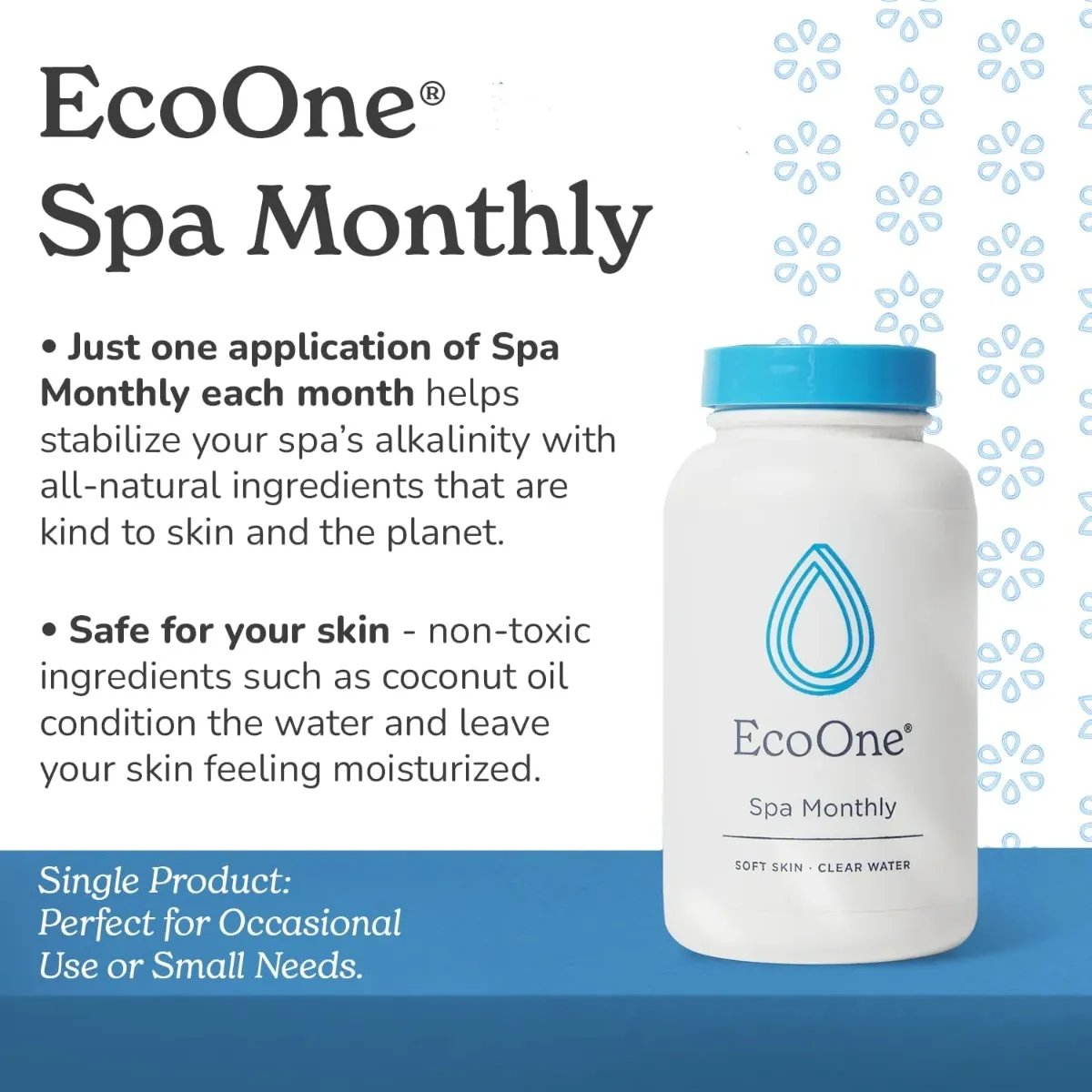 • EcoOne Spa Monthly by EcoOne is an all-natural, gentle spa conditioner for hot tubs and swimming pools.