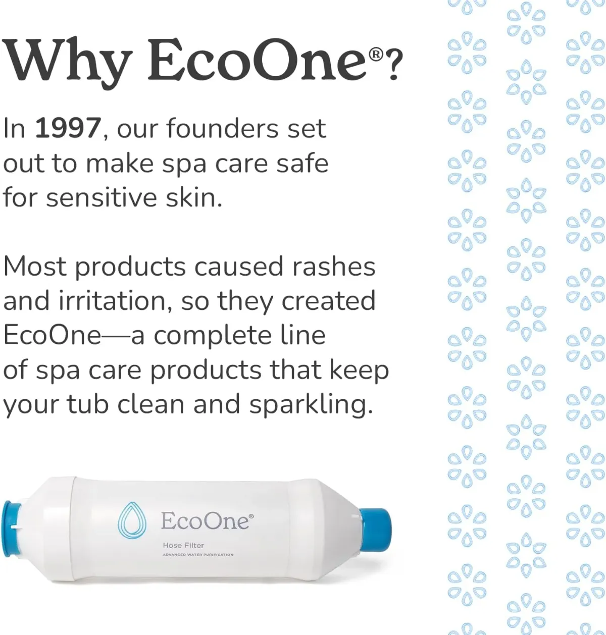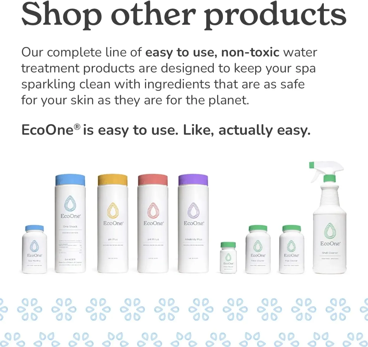 And, while other brands opt to concentrate on harsh chemical sanitization, EcoOne offers ingredient conscientious results that wraps around safe and effective spa conditioning!